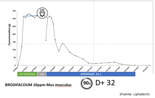 *En el caso del flocoumafen, rodenticida de segunda generación y sin resistencias conocidas, su único formulador asegura que los tiempos de eliminación se mantienen, ya que, en su nueva formulación, el refuerzo de la palatabilidad con nuevos ingredientes, hace que el incremento del 25-30% de ingesta requerido se logre con el incremento de atracción de su nueva formulación.